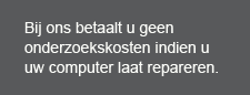 Na het onderzoek wordt met u overlegd of en hoe u uw computer wilt laten repareren. Indien er geen oplossing gevonden kan worden voor het verhelpen van het probleem, worden er geen onderzoekskosten in rekening gebracht.